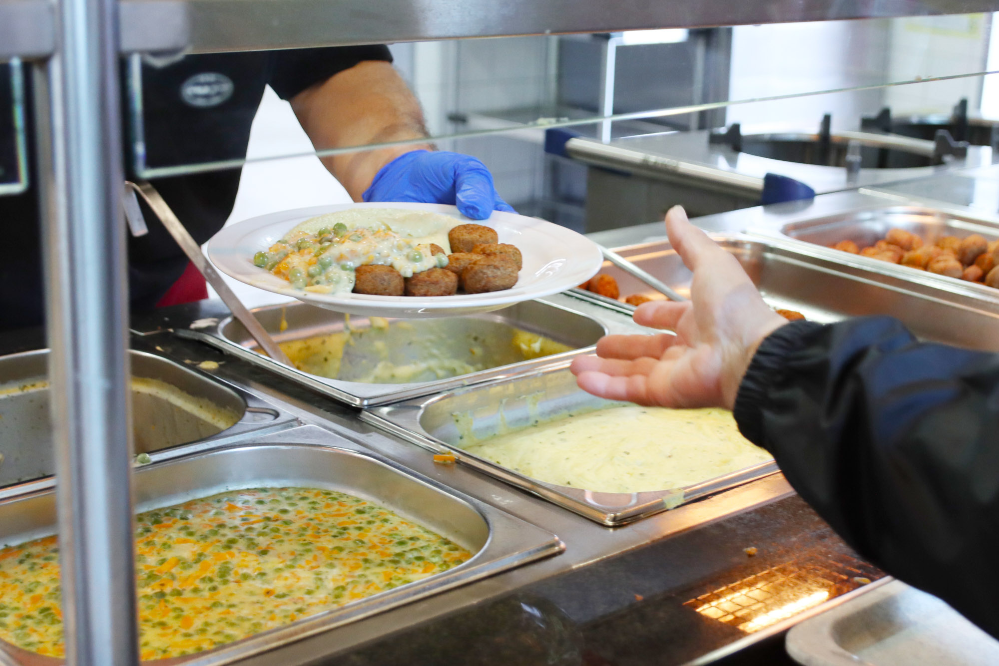 Mittwochmittag im antonius Café. Während es sich die ersten Gäste schon auf der Terrasse schmecken lassen, kann man sich an der Essensausgabe noch entscheiden: Heute lieber Schupfnudel-Pfanne mit Gurkensalat oder Ackerbohnen-Bällchen mit Kartoffel-Pastinaken-Püree und Rahmgemüse? Ungefähr zwei Drittel der Mittagstischler bestellen letzteres.