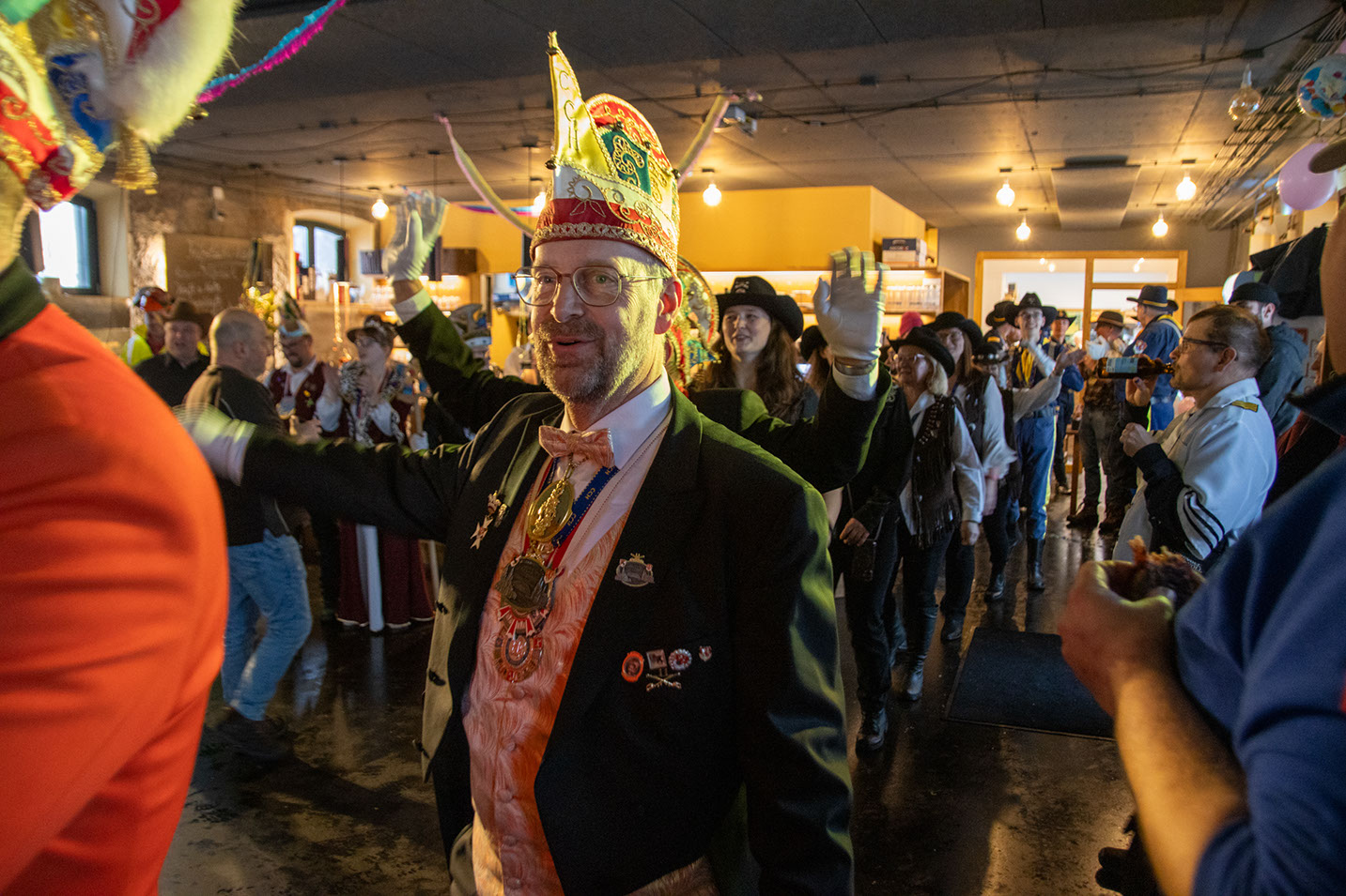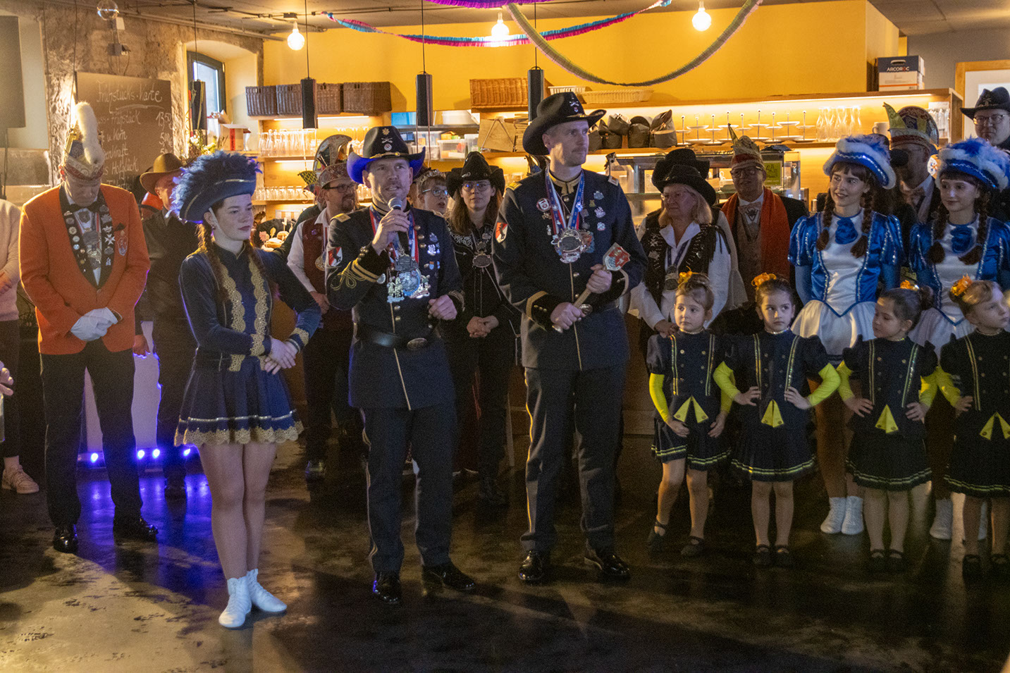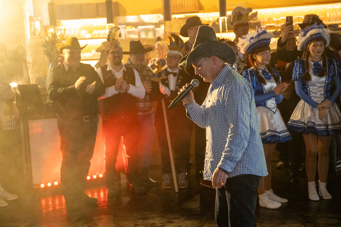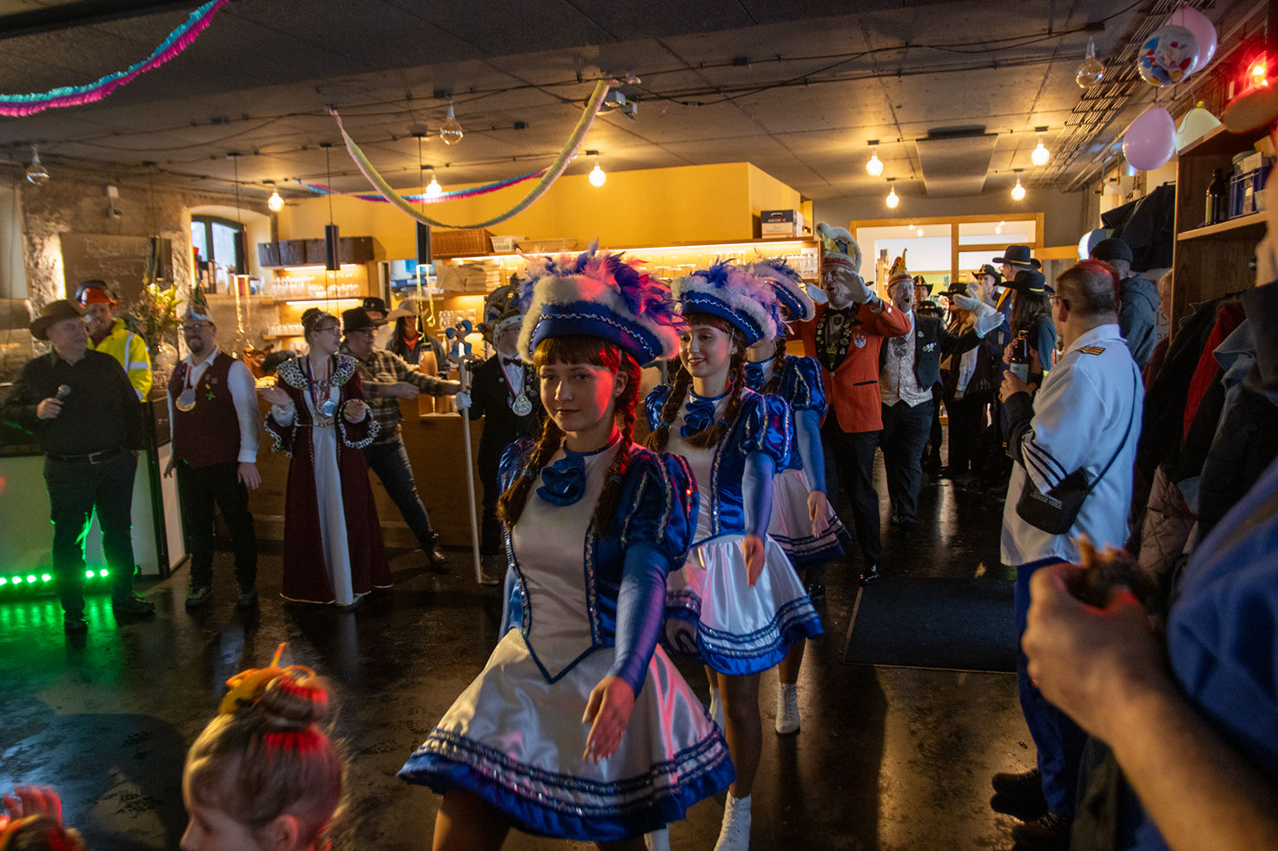 Die jüngste Tanzgruppe des CCH, die Präriekäfer, gewann mit ihrem Auftritt alle Herzen. Schon nach den ersten Takten war klar: Diese kleinen Nachwuchskarnevalistinnen haben Fastnacht im Blut. So durften sie auch gleich noch eine Zugabe nachlegen. Rainer Gernet, in der Kampagne 2023/2024 selbst „Jong“ von antonius und damit fastnachtserprobt wie kaum jemand, gab zu Ehren des hohen Besuchs noch einmal seine berühmten Jodelkünste zum Besten. Anschließend begeisterten die Blau-Weißen Teenies, die Nachwuchsgarde des CCH, angeführt von Westendmarshalltanzmariechen Anna das Publikum mit ihrem Tanz. Wer seine Füße bisher noch stillhalten konnte, hatte nun keine Chance mehr.