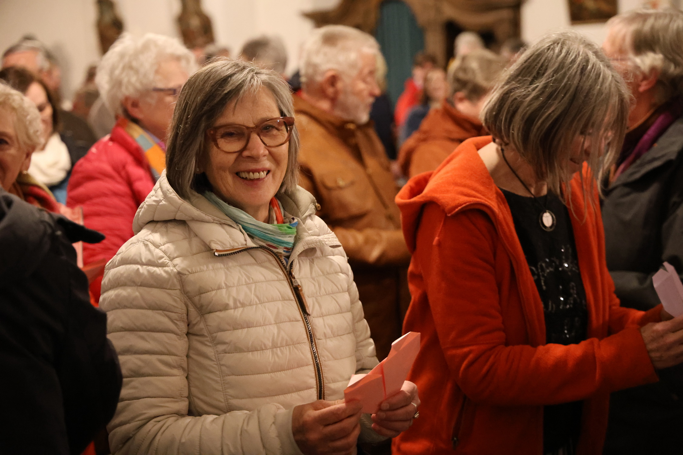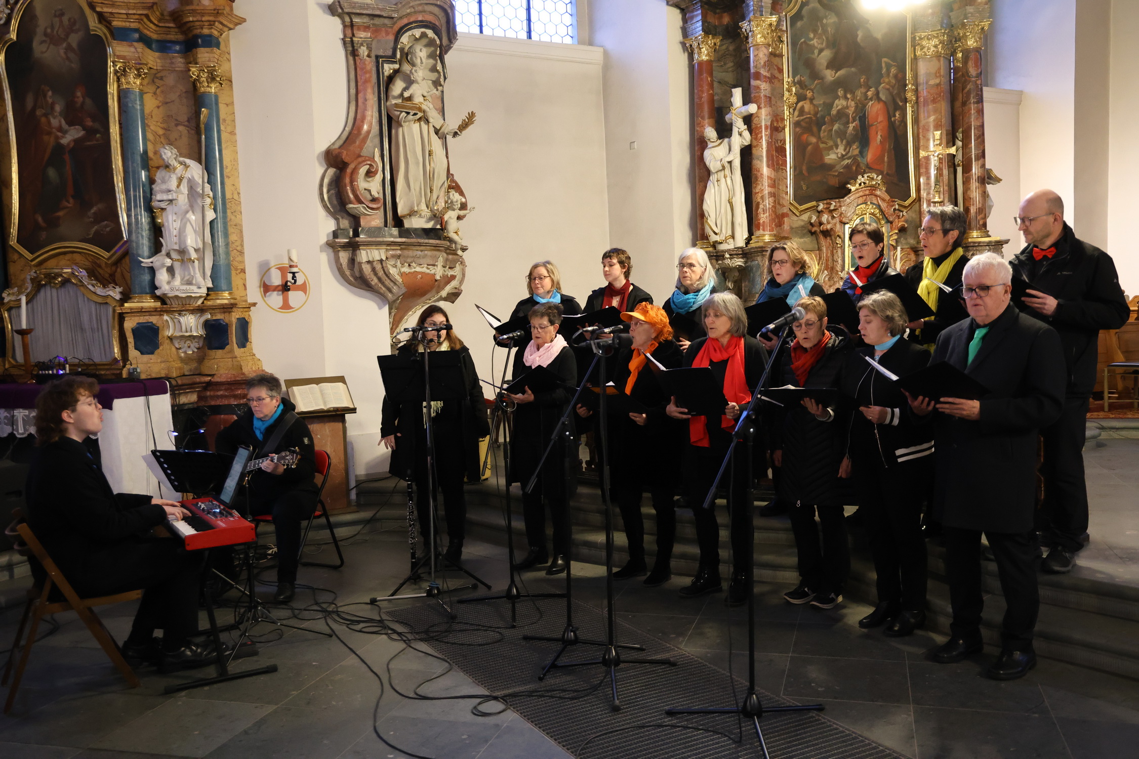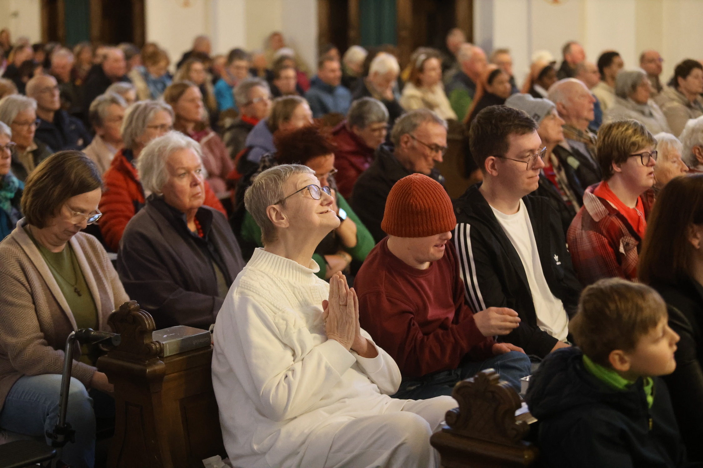 Die Fürbitten nahmen die Sorgen der Welt auf: den bedrohten Weltfrieden, die Getöteten und Geflüchteten, aber auch die Hoffnung auf Menschen, die Verantwortung für Frieden übernehmen. Ebenso wurde für den Frieden in Familien und im persönlichen Umfeld gebetet. Musikalisch gestaltet wurde der Gottesdienst vom Chor „Zwischentöne“, begleitet von Klavier, Gitarre und Klarinette. Am Ende lud Franziskaner-Pater Cornelius die Besucher noch zu Begegnung und einem kleinen Imbiss auf die Terrasse ein. Viele blieben noch eine Weile – vielleicht auch, um das weiterzuführen, was an diesem Abend begonnen hatte: die Suche nach Frieden für das eigene Herz.