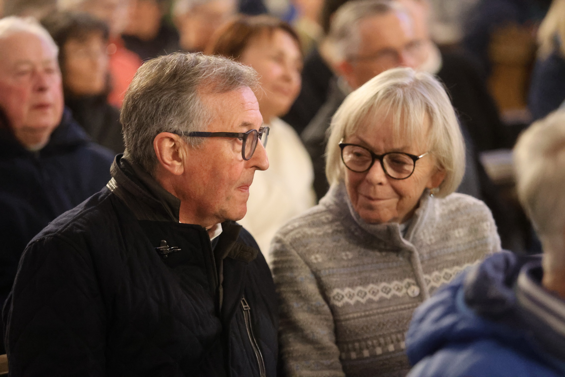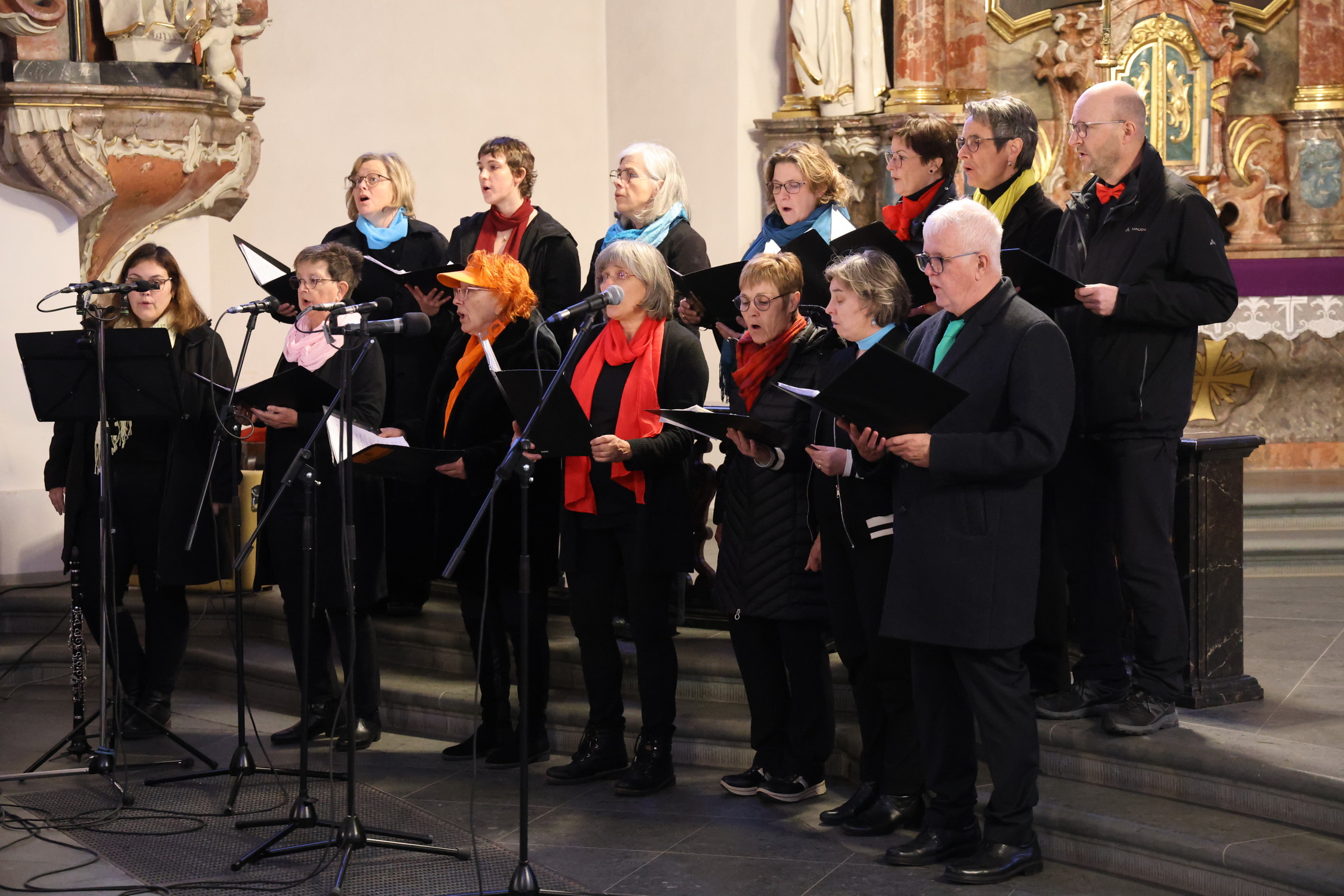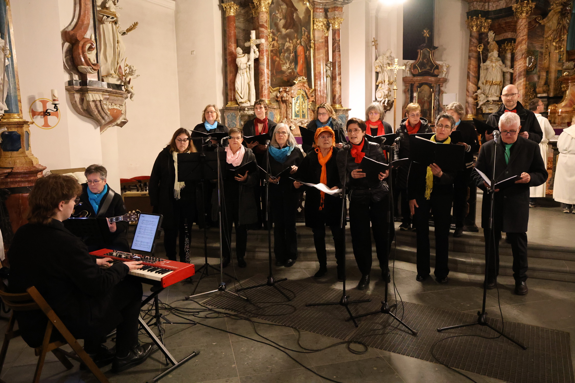 Die Fürbitten nahmen die Sorgen der Welt auf: den bedrohten Weltfrieden, die Getöteten und Geflüchteten, aber auch die Hoffnung auf Menschen, die Verantwortung für Frieden übernehmen. Ebenso wurde für den Frieden in Familien und im persönlichen Umfeld gebetet. Musikalisch gestaltet wurde der Gottesdienst vom Chor „Zwischentöne“, begleitet von Klavier, Gitarre und Klarinette. Am Ende lud Franziskaner-Pater Cornelius die Besucher noch zu Begegnung und einem kleinen Imbiss auf die Terrasse ein. Viele blieben noch eine Weile – vielleicht auch, um das weiterzuführen, was an diesem Abend begonnen hatte: die Suche nach Frieden für das eigene Herz.