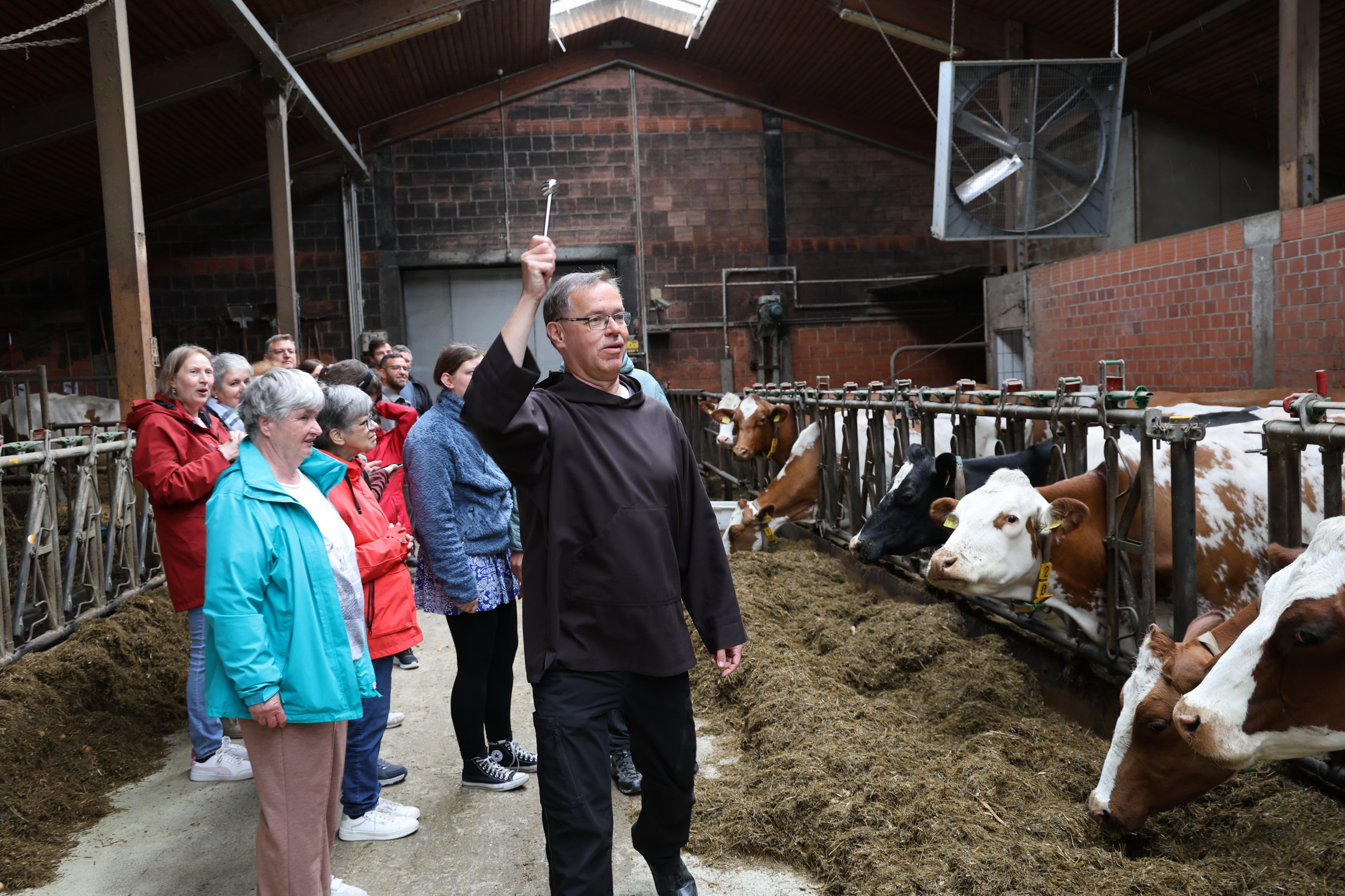 Nach der Begrüßung durch Ulrich Schmitt aus der Geschäftsführung von antonius verfolgten viele Kinder, aber auch Erwachsene, das Spektakel mit leuchtenden Augen. Zuvor wurden die Kühe von Pater Thomas gesegnet. „Wenn wir mit den Tieren gut und artgerecht umgehen, ist das auch ein Beitrag für eine bessere und menschlichere Welt“, betonte der Franziskaner und ergänzte: „Das Rausgehen in die Sonne, und die Sonne auf der Haut zu spüren, das ist eindeutig artgerecht.“