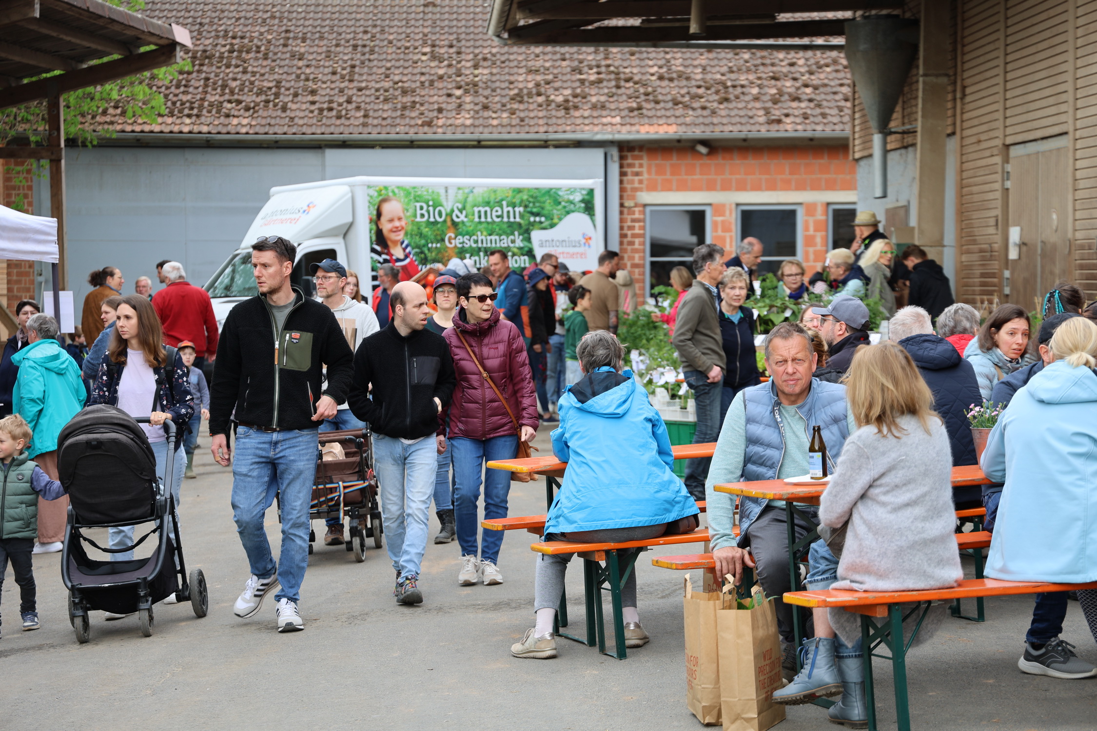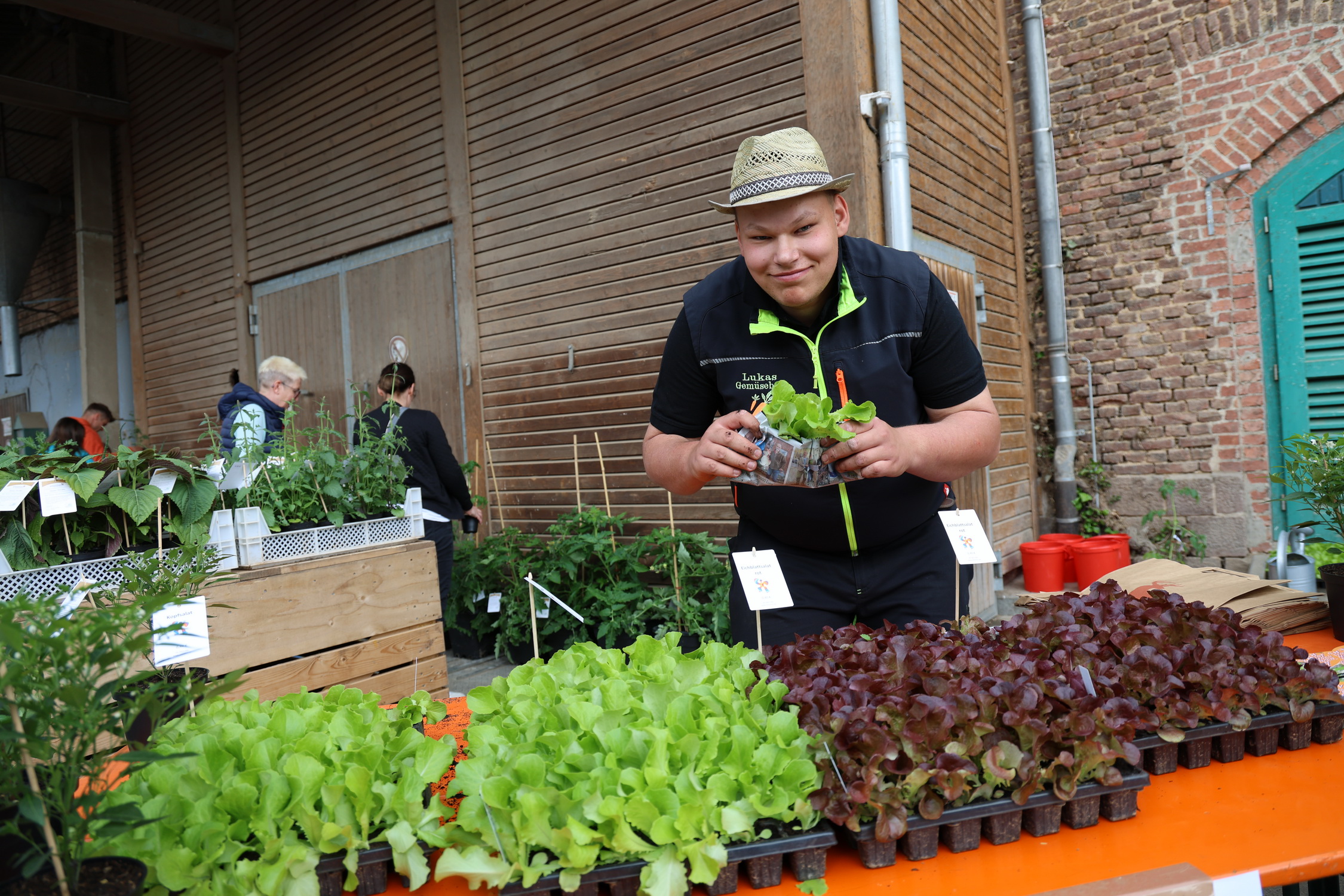Im Anschluss lud der Pflanzen- und Gemüsemarkt zum Stöbern, Austauschen und Einkaufen ein. Die Mitarbeitenden vom antonius Hof und aus der Gärtnerei standen den Besucherinnen und Besuchern mit fachkundigen Tipps zur Seite und präsentierten eine große Auswahl an Kräutern, Setzlingen und frischem Gemüse. Viele nutzten die Gelegenheit, sich beraten zu lassen und Inspiration für den eigenen Garten oder Balkon mitzunehmen.