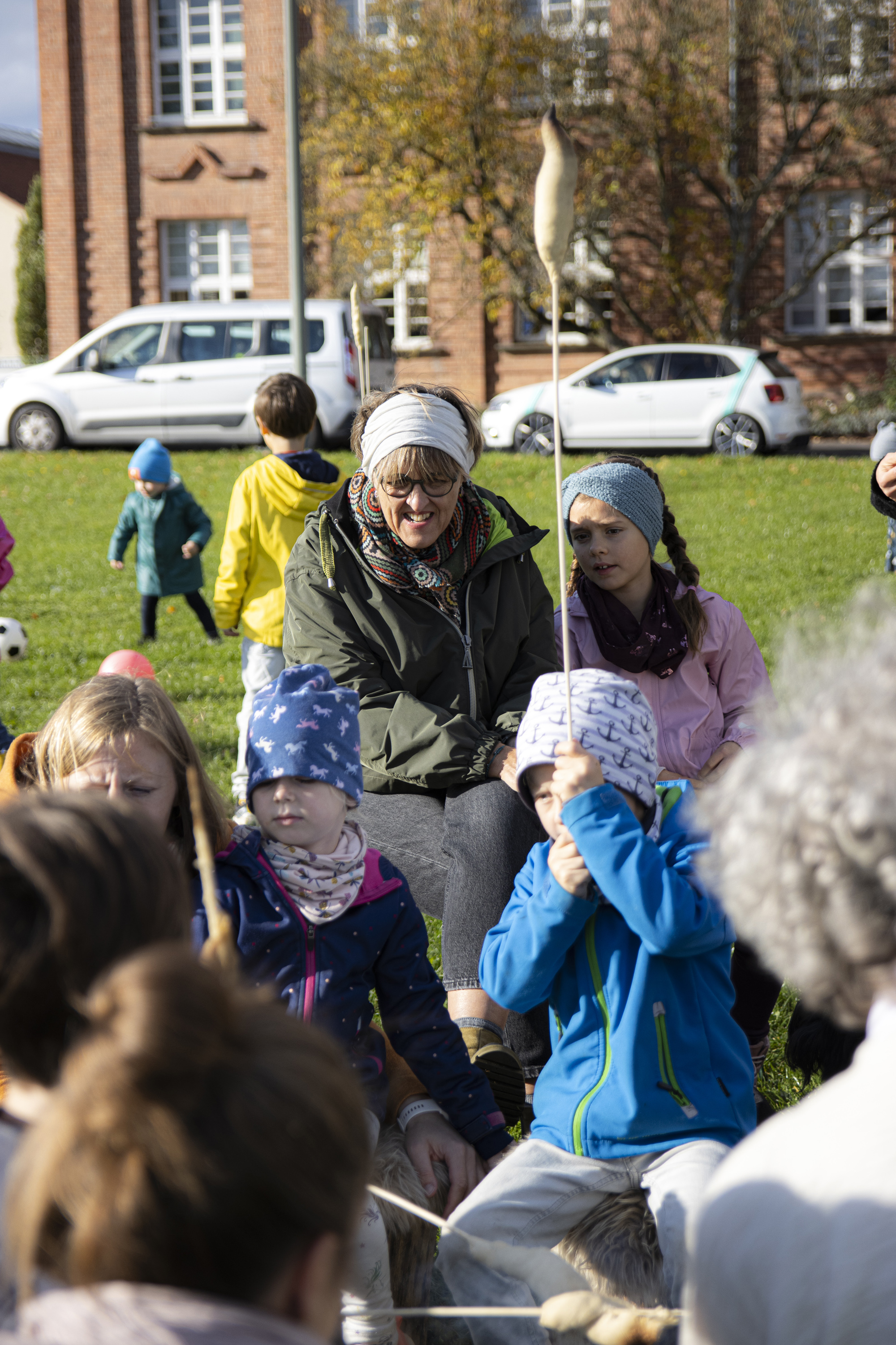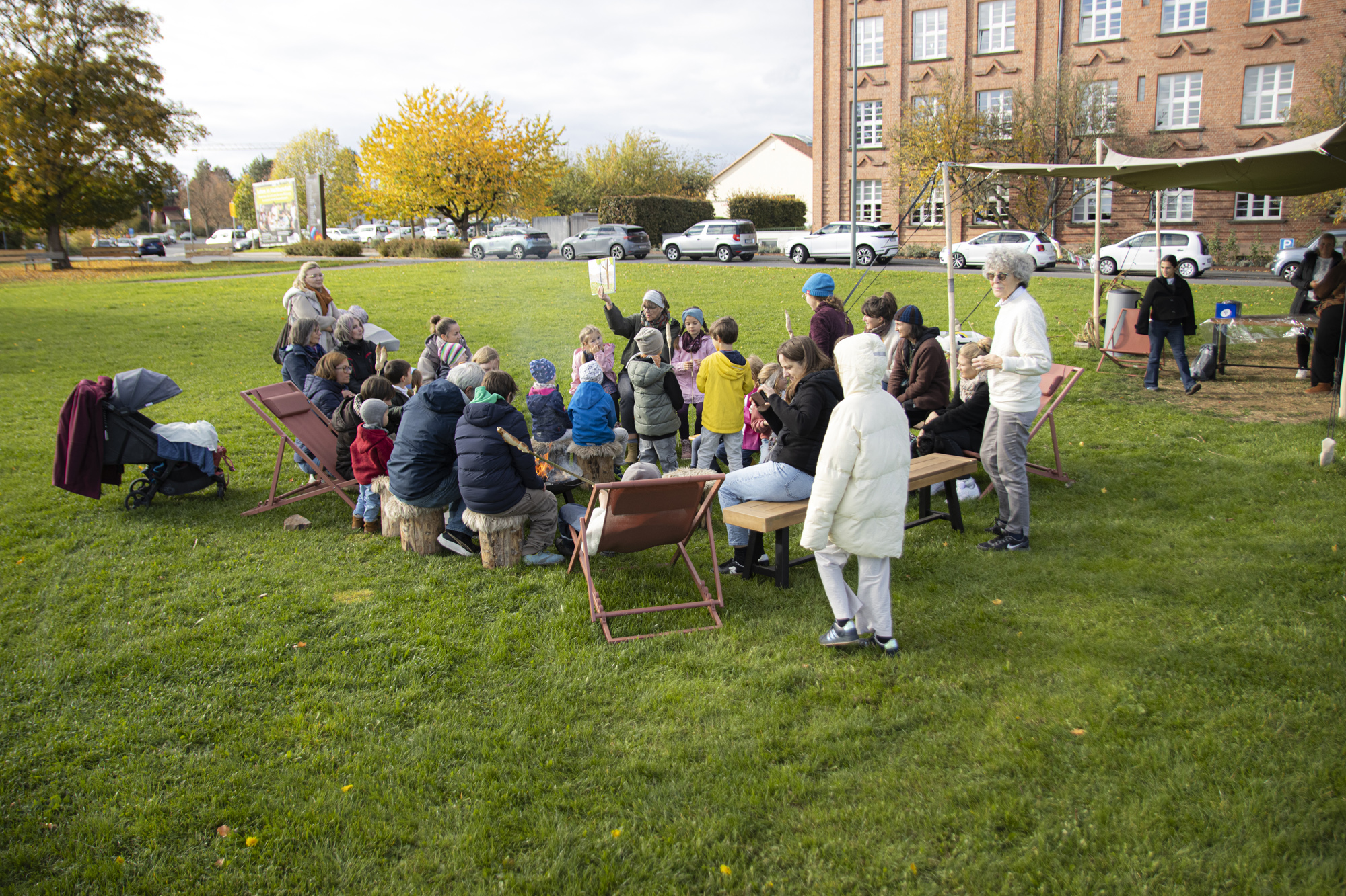 Diese fand am Dienstag, 21. Oktober 2025, beim wöchentlichen Lagerfeuer-Nachmittag für Kinder und Eltern im antonius Park statt. Die Lesung übernahm antonius-Mitarbeiterin Antje Herchenhahn, die sich selbst „Vorleserin aus Leidenschaft“ nennt und am liebsten für Kinder liest. Mal in der Stadtbibliothek, mal im Förderzentrum Zitronenfalter oder in der Kita ambinius. Auf die Kinder sprang diese Leidenschaft über: Aufmerksam lauschten sie der Geschichte der Maus Frederick, sprachen bekannte Stellen mit oder übernahmen begleitende Instrumente wie einen Regenmacher. Vor und nach der Lesung konnten die Kinder Drachen steigen lassen, Spiele ausprobieren, Stockbrot am Feuer backen oder passend zum Thema Filzmäuse basteln.