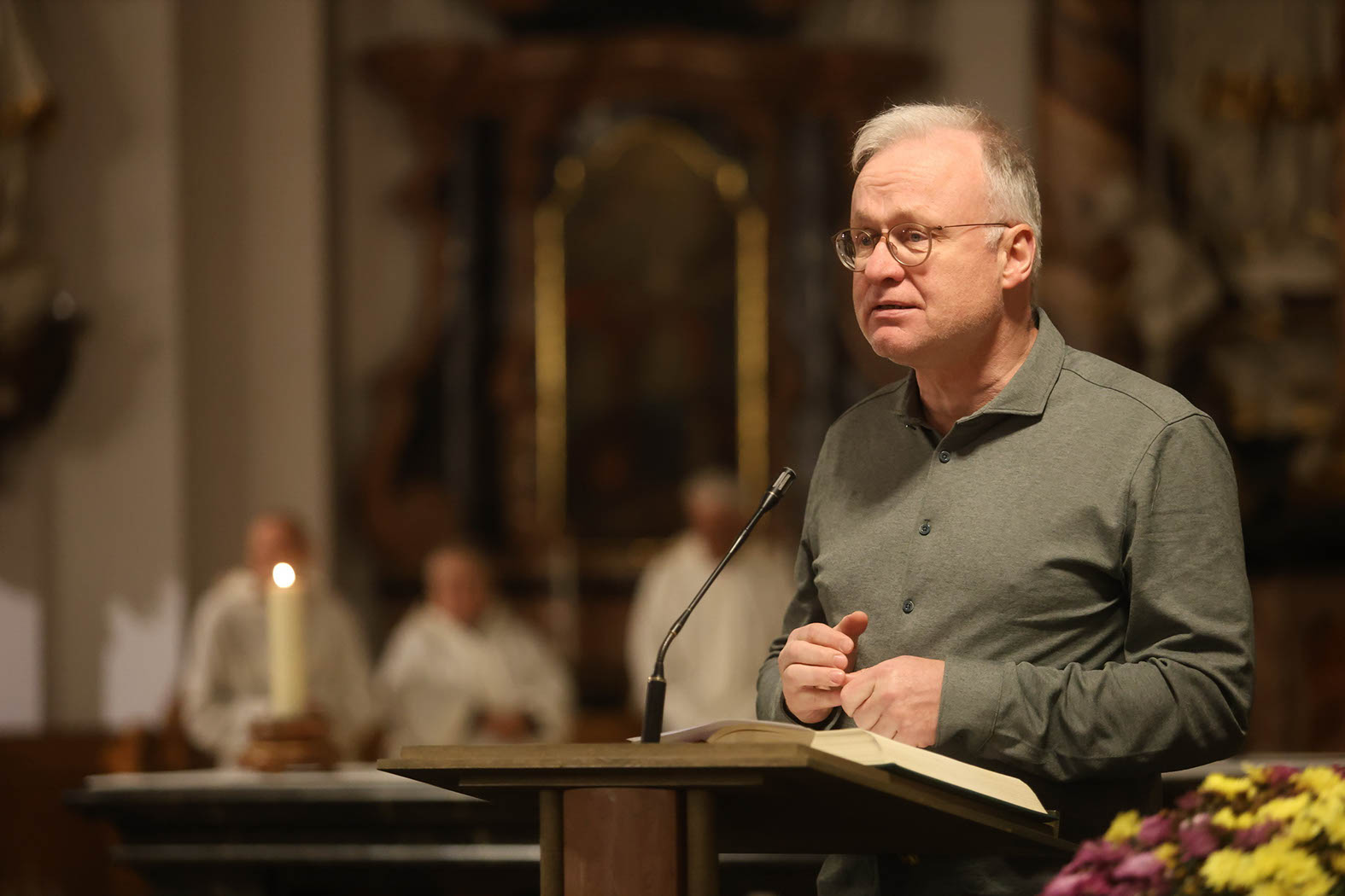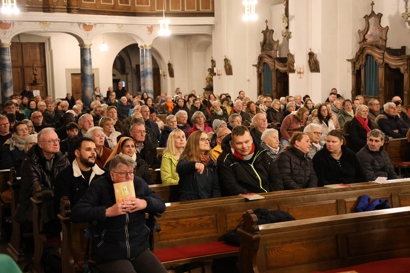 Zu Beginn begrüßte Alexander Gies aus dem Führungsteam von antonius : gemeinsam Mensch die Besucherinnen und Besucher. Er erinnerte an das bekannte Bild des heiligen Martin, der seinen Mantel teilte und damit dem frierenden Bettler Schutz gab. Teilen, so Gies, könne Freude wachsen lassen und Sorgen leichter machen. Davon ließ sich der Abend tragen.