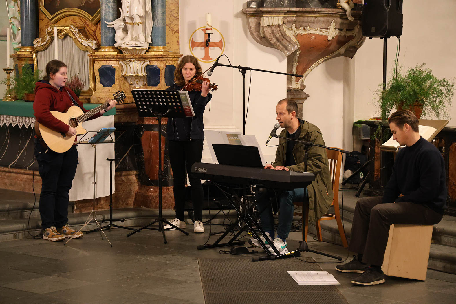 Die Musik der KJF Band verlieh dem Gottesdienst einen lebendigen Rahmen. Zur Freude der Besucherinnen und Besucher sucht die Band noch nach einem passenden Namen. Vorschläge wurden gerne entgegengenommen und sorgten im Anschluss für Gesprächsstoff.