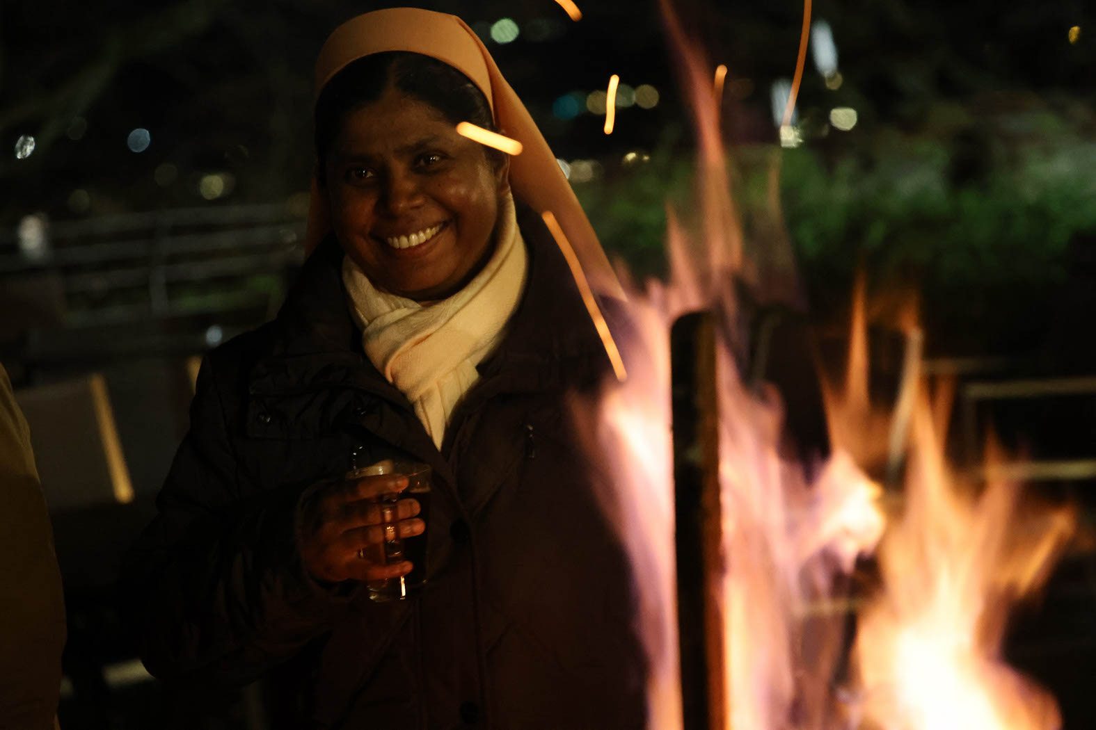 Gestaltet wurde der Gottesdienst von einer vielseitigen Gruppe. Mit dabei waren Pfarrer Togar Pasaribu, Jugendliche der KJF (Katholische Jugend im Bistum Fulda), Auszubildende von antonius und Bewohner der WG Martin aus Marbach, die es seit fast vier Jahrzehnten gibt. Für Pfarrer Togar war dieser Gottesdienst eine kleine Rückkehr an den Frauenberg. Er war einige Jahre Präses der KJF und hatte hier schon früher Gottesdienste gefeiert. Nun verabschiedet er sich aus seinem Amt und wird künftig stärker im Raum Hanau wirken.