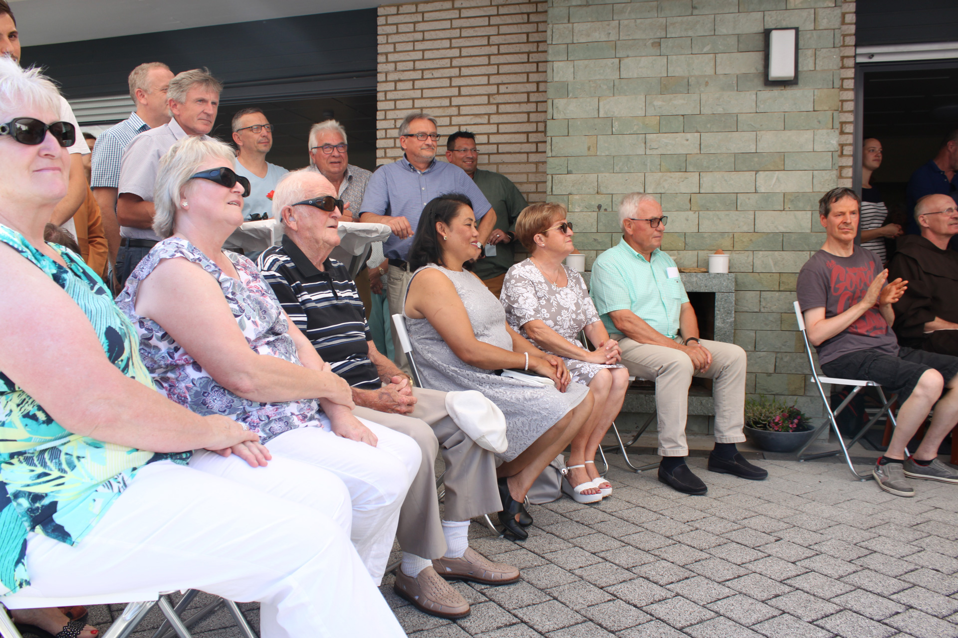Bruder Gabriel und Pater Robert gaben dem Haus den Segen. Nach dem offiziellen Teil hatten alle Gäste die Chance sich die Räumlichkeiten anzusehen. Im Anschluss feierten die rund 80 Gäste bei kalten Getränken, leckeren Fruchtspießen (eine Spende der Fa. Hartmann) und Bratwürstchen die Einweihung des neuen Hauses. Die Veranstaltung wurde musikalisch begleitet von zwei Musikerinnen der Musikschule Ebert.