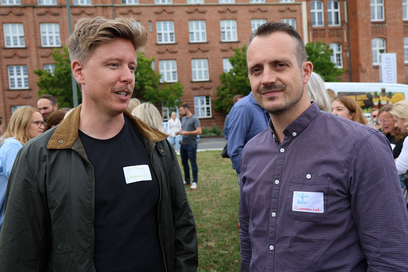Gut gelaunt und voller Erwartung trafen die Gäste auf der Festwiese vor dem Haupthaus ein. Gleich am Eingang erhielten sie ein Namensschild zum leichteren Kennenlernen – und dazu die kleine Aufgabe, ein Wort zu wählen, das antonius für sie am besten beschreibt. Dieses „Wie-Wort“ spielte eine Rolle im anschließenden antonius-Memory, bei dem es darum ging, ein Gegenüber zu finden, das denselben Begriff gewählt hatte.